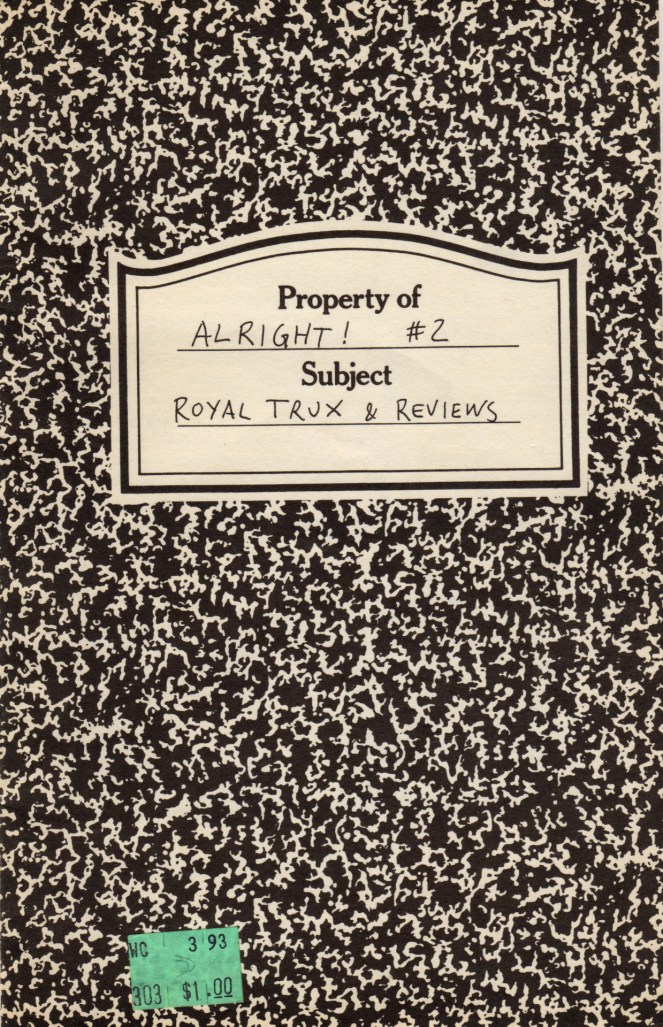 • This is truly an era of No Fuckin’ Record Review Left Behind! We asked and and we received: According to one of our founding fanzine fathers – Jay Hinman – Alright! was written and published “by Rich and Sandra from the Long Beach band Jackknife.” Thanks Jay!