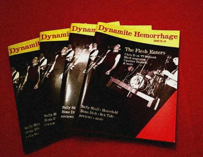 DYNAMITE HEMORRHAGE magazine #1, a 68-page rocknroll blowout that came out the last week of this past December, is down to its last 100 copies. I might be storing them in the garage for the rest of my life, or, if 100 of you act now, I’ll sell out and be forced to print some more.