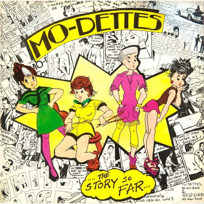 One of the first 45s from the “new wave era” that I ever bought was the MO-DETTES’ “White Mice / Masochistic Opposite” in 1980, and it remains one of my favorite records of any era. Played to death on my local college radio station back in the day (KFJC), the song “White Mice” arrives at the perfect intersection of rough English D.I.Y. and pure golden girl pop, and has one of the most lilting harmonies you’ll ever hear. Among the more charming aspects of the band were the mushmouth vocals of Ramona Carlier, she being of Swiss descent and a then-recent UK immigrant (which helps explains it). It’s hard to put a bead on exactly what she’s saying beyond the song’s chorus, which starts with the first-rate couplet, “Don’t be stupid, don’t be limp / No girl likes to love a wimp”, and contains a throbbing bassline that leads, rather than follows, everything else in the song. The guitarist is practically invisible throughout – her ineptitude in moving from chord to chord is part of what’s so special about “White Mice” and indeed, the small handful of other good tracks this band produced in their short life.