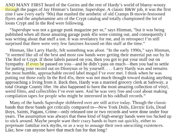 Here’s a thing about the old fanzine I did in Eric Davidson’s 90s garage punk book “We Never Learn”.