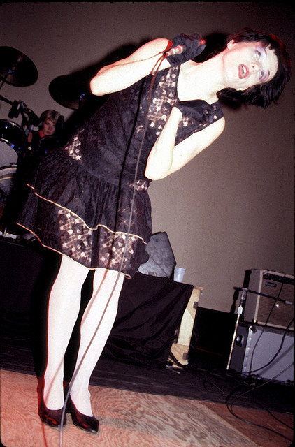 Gina Birch of THE RAINCOATS, performing live in San Francisco at the Market Street Theater, 1981.