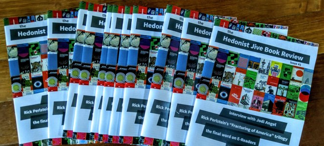 We have a new fanzine out. It’s a digital-only ‘zine, solely about books and authors called The Hedonist Jive Book Review – and it’s 100% free to download the PDF or read on your tablet, computer or even smartphone via Issuu.