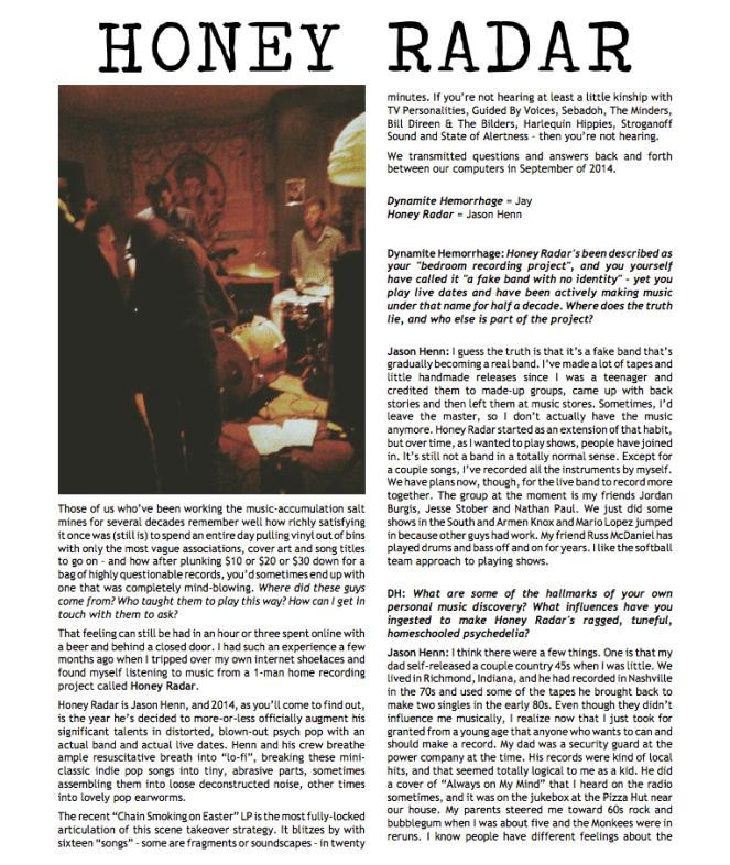 – Interview with bedroom lo-fi pop savants HONEY RADAR, currently making many short, abrasive and lovely mini-masterpieces out of Philadelphia