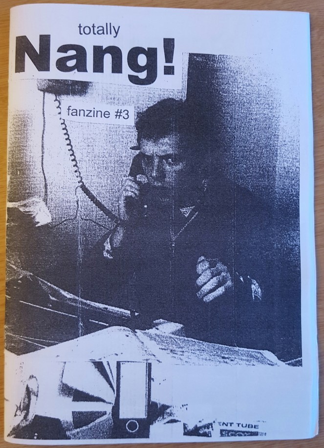 Just got the new TOTALLY NANG fanzine (#3) in the mail. It’s a small-size corker. It’s run by Dee from Glasgow, Scotland, and her tastes run to the esoteric & experimental outer fringes of rock & folk & elsewhere.