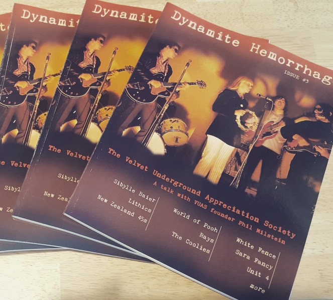 Dynamite Hemorrhage #3 is an 84-page music fanzine devoted to