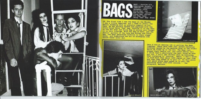 THE BAGS, from the insert that comes with Munster Records’ 2xCD collection of all of the Dangerhouse 45s.