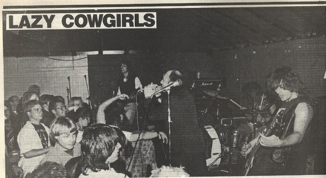 This is from a 1988 LAZY COWGIRLS show live at the Anti-Club in Los Angeles, scanned from Australian fanzine B-SIDE in ‘89. Their shows there and at Raji’s were blessed monthly events that carloads of folks from Santa Barbara, where I went to school, would caravan down for.