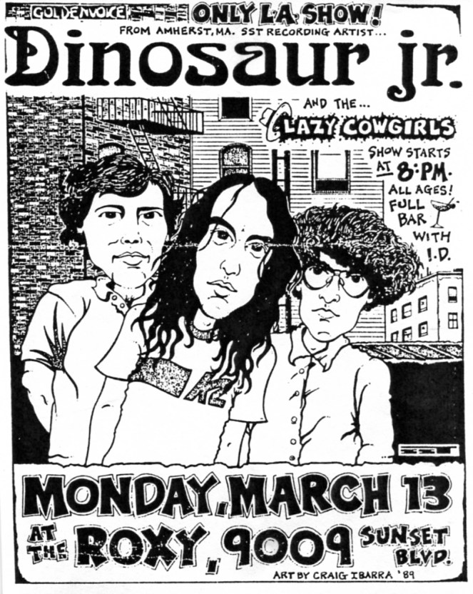 I was at this show, and Dinosaur Jr., as they were in 1987 (or ’88?) when I’d seen them in Upland, CA, were totally booooring. Man, we were such fans of theirs, but the live show was a huge letdown and a helluva bummer after driving 2-3 hours each way to see them.