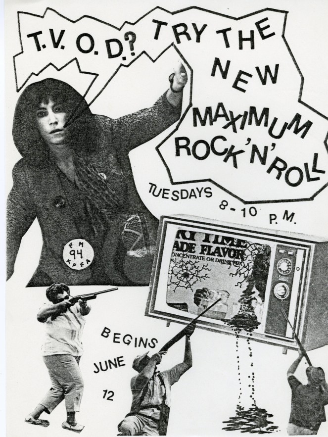 Even though I was a bit of a “new waver” in the early 80s with a serious Siouxie & The Banshees, Bauhaus & Simple Minds addiction, I also tuned in every Tuesday night at 8pm to the early Maximum RocknRoll radio show on KPFA, whose signal we could barely pick up at my house in San Jose. It’s where I learned about hardcore, early LA punk, and all sorts of bizarre leftist political agitprop for the very first time.