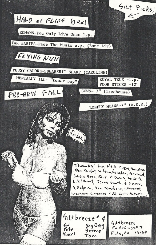 SILTBREEZE magazine’s “picks” from Issue #8, which, judging from the records they most loved, came out in about 1988. This is a tame, almost-SFW photo compared to the rest of the issue’s marginalia. Damn those fellas had some good taste, though, hunh?