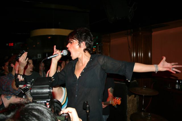 The band backing up the McDonald brothers were Phil and Dave from SIN 34. They played about 15 minutes, skanked a bunch on stage and in the pit with the rest of us, and at the end Steve McDonald’s bandana was torn from his head and his long hair came spilling out. They kept making jokes I didn’t understand about “breaking Julie out of jail” (Julie being Julie Lanfeld of Sin 34). And they did the song you see here, their only documented online performance, from the movie “Lovedolls Superstar”. Totally, totally ‘core.