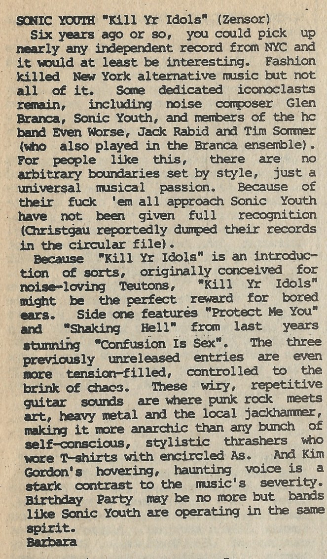 I mumbled a hello, thanks, really glad you’re playing here in LA, OK, thanks, gotta go – and tripped back down the stairs, back with the common people, where I belonged. Great night – and that show was captured on a widely circulated bootleg as well. Anyway – totally love Kim (I can call her Kim, you see), and this article’s well worth a read.