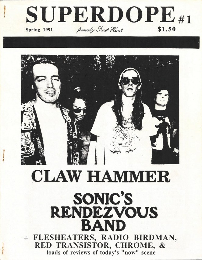 • I was fortunate enough to have 4 excellent contributors – Kim Cooper (who later went on to start SCRAM magazine and recently wrote this excellent book); Grady Runyan (guitarist for Liquor Ball and Monoshock); photographer Nicole Penegor; and the recently deceased Steve Watson, a great guy whose SONIC’S RENDEZVOUS BAND piece was actually cut off and sent to the printer before either of us noticed. Read it – it’s got a somewhat clunky ending. We talked about getting a Part 2 in my second issue, and I guess we both just sorta forgot that too.