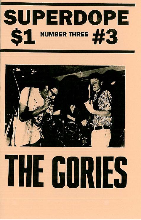 SUPERDOPE #3 captures a bit of the (un)popular rise of the great garage punk bands of the 1990s, with the piece de resistance being this interview with THE GORIES. Though I had no idea at the time, the band would soon break up, and gave few other interviews during their career. I simply mailed them a list of dopey questions and let them record their answers on a cassette tape; as it turns out, it was my favorite interview I “did” outside of the DON HOWLAND one that made it into issue #6. That I never got to see the band play always stuck in my craw, a situation that was rectified when they hit my town on their reunion tour in 2010.