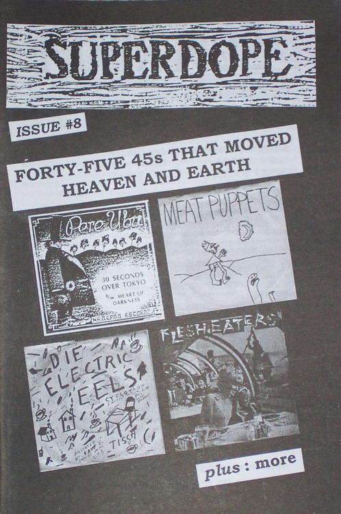 SUPERDOPE was a print fanzine that I made from 1991 until 1998, in various sizes and formats and varying degrees of quality. This issue, SUPERDOPE #6, was not only the one with the largest print run and the widest distribution, I’d have to argue it was the one that I think came out the best of the 8 issues, all things considered. Outside of the then-modern computer I’d use at the very patient and gracious Kimberly MacInnis’s house, who very much helped with the design structure (like, teaching me how to make columns), it was completely and totally hand-made, up to and including the bold lines that separate one article from the next. I actually would type those lines out by hitting the “dash” button multiple times in a big font, then cut the long strip of paper out, then glue it down onto my cardstock proof sheet (or whatever the thing is called that you send to the printer). Just look at this cover here and you’ll see what I mean.