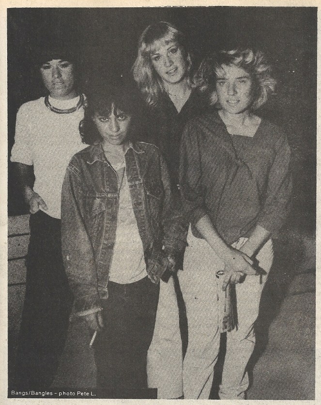 Guess who. It’s THE BANGS, later known as The Bangles, right around the time of their killer 1981 “Getting Out of Hand/Call On Me” 45 on Downkiddie Records.