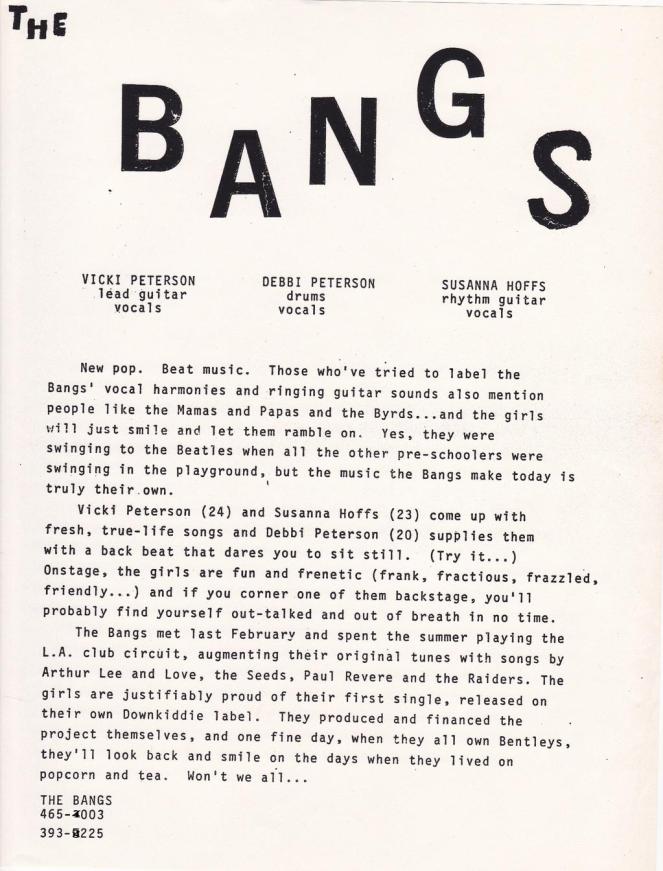 Press release from THE BANGS, 1982. Later The Bangles, of course.